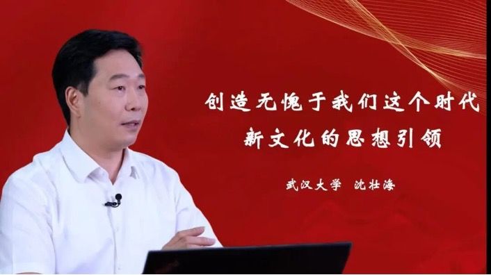 沈壮海教授主要从事马克思主义中国化、文化建设和思想政治教育等方面的研究。先后主持国家社科基金重大项目等课题多项,在《中国社会科学》《求是》《马克思主义研究》《人民日报》《光明日报》等发表论文百余篇,出版个人专著及主编学术著作10余部,荣获“五个一工程”奖、国家级教学成果一等奖等多项荣誉。在习近平文化思想大讲堂第一讲中,沈壮海教授围绕“创造无愧于我们这个时代新文化的行动指引”这一主题进行讲授,从战略之笔、理论新篇、精神特质、做践行者四个方面展开讲解。