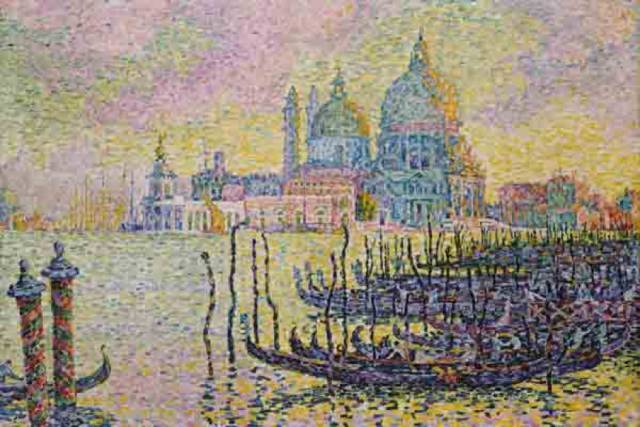 司徒老师还介绍了另一位新印象派代表人物西涅克(Paul Signac1863-1935)。西涅克热爱科学、文学和政治,与修拉共同打下新印象派的理论基础,他是独立艺术家协会主席,鼓励年轻人在艺术上创新。在绘画上,相对于修拉密集的小点,西涅克更为豪放,他运用大笔点彩,放大后的点使画面显得不那么小气局限,画面效果也更为生动。