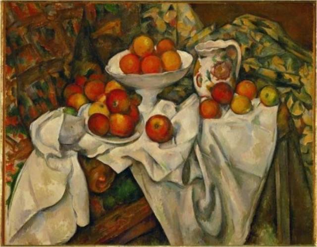 塞尚绘画的最大特点是他画面物体极富有体积感。他的静物画常常表达纯色彩和块面,展现出对构图的兴趣,具有冷峻的内在的精神气质。不同于印象派把握瞬息万变的光影,塞尚追求某种坚实感持久性、永恒性的形体。他善于运用色彩的冷暖转折,画风朴实简朴,明快结实,反对在绘画中表现情节。从塞尚开始,画家开始尝试通过绘画表现主观世界(以往都是是表现客观世界),在摄影术的出现对于艺术表现客观世界的冲击下,强调“我要表现我”和张扬主观个性的魅力。