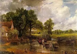 康斯太勃尔 《干草车》海峡彼岸的法国,巴比松画派(École de Barbizon)也正兴起。柯罗(Jean Baptiste Camille Corot, 1796~1875)就是这群在巴比松村庄描绘风景的民间画家之一。从他雾蒙蒙的天空、毛茸茸的枝干以及对风与光的捕捉中,已经可以看到印象派的雏形。