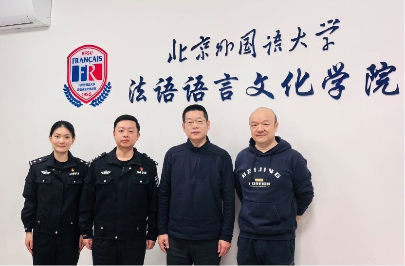 2025年12月12日上午,首都机场公安局北京首都国际机场分局一行专程到访北京外国语大学法语语言文化学院,双方围绕涉外警务执法办案中的多语言翻译支持、实习实践基地建设、协同培养复合型警务外语人才等议题展开深入交流。法语学院党总支书记李勇、副院长王鲲与北京首都国际机场分局法制支队陆鹏飞支队长一行参与会议。